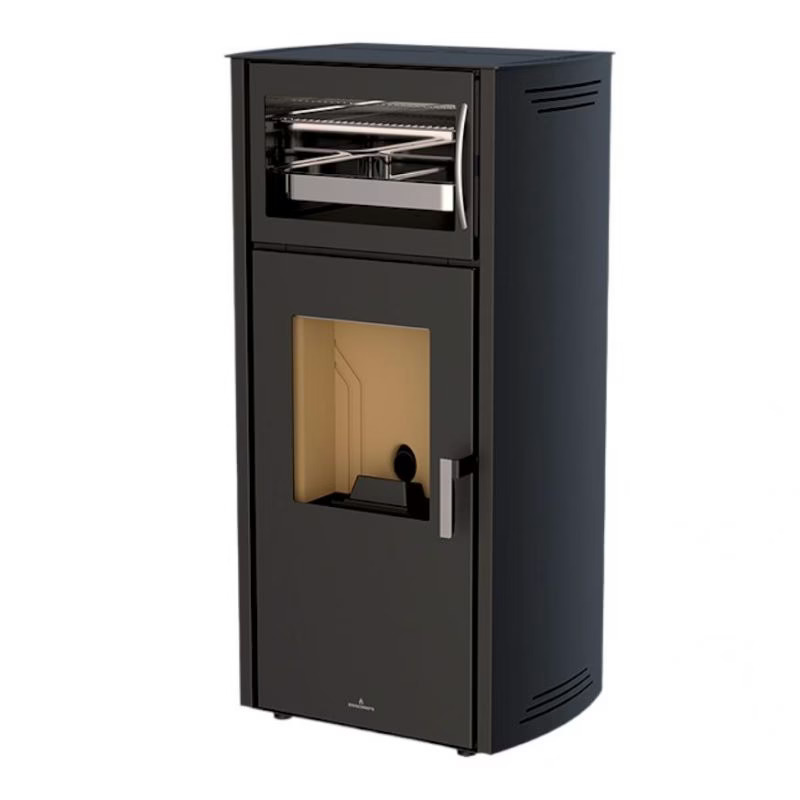 La stufa a pellet con forno BRONPI Noa Horno è una soluzione 2 in 1 che combina un riscaldamento efficiente con la praticità di un forno integrato. Con una potenza nominale fino a 10 kW, è in grado di riscaldare fino a 250 m³, risultando ideale per ambienti di medie e grandi dimensioni.