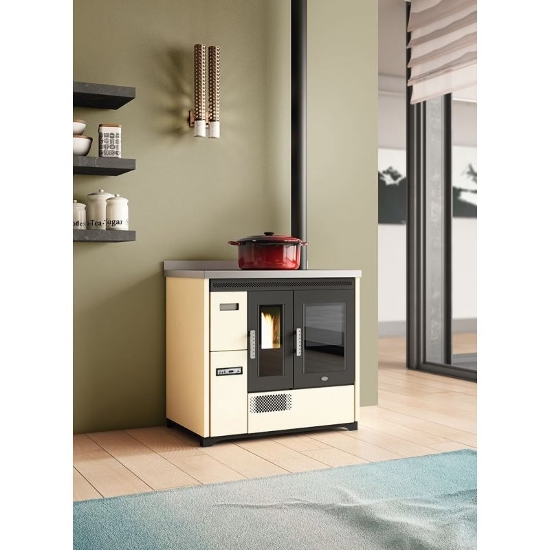 Il fogão a pellet EVACALOR Enrica 9 kW combina efficienza energetica, automazione e versatilità per offrire un’esperienza di cottura pratica e confortevole. Ideale come alternativa moderna ai tradizionali stufe a legna, questo apparecchio garantisce riscaldamento ambiente e cottura simultanea in maniera indipendente e intelligente.