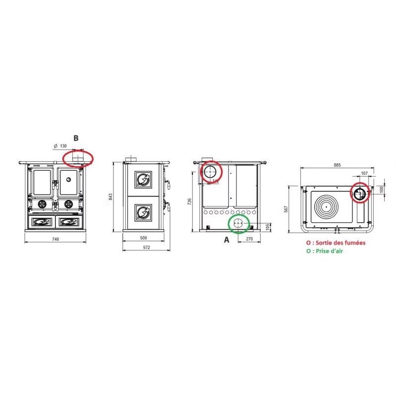 | Uscita fumi | Ø130 mm (superiore / posteriore) |