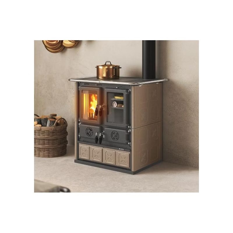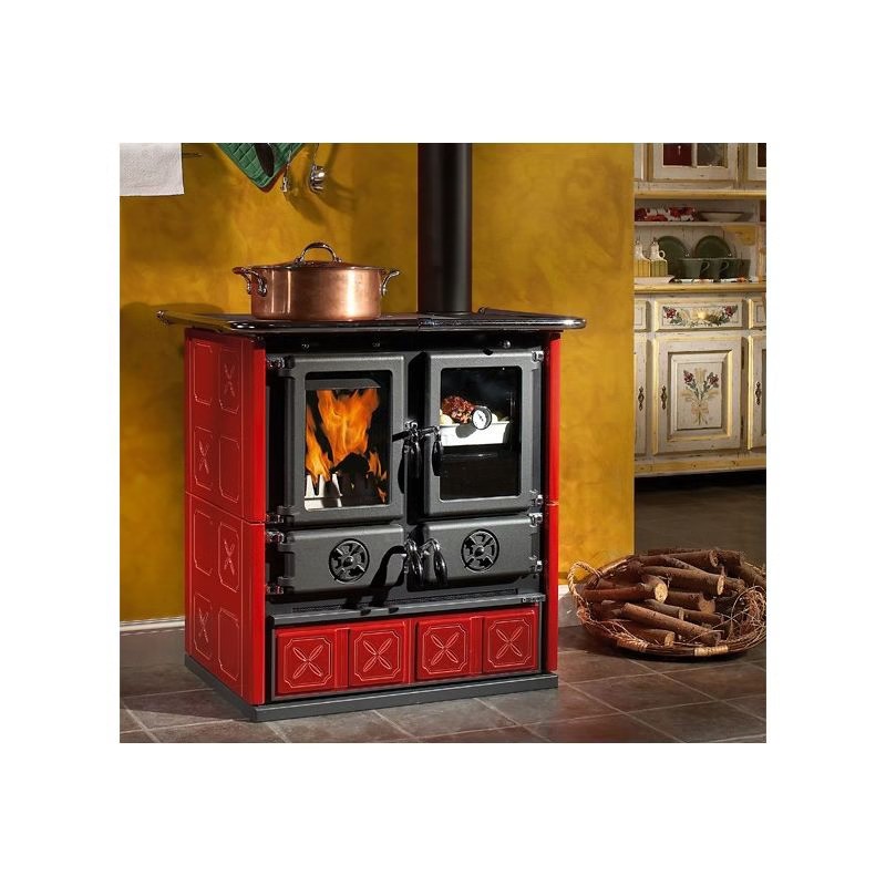 LA NORDICA Rosetta 5.0 Maiolica è una stufa a legna elegante e compatta, dotata di un forno smaltato da 28 L e revestita in maiolica di alta qualità. Con una potenza di 7,9 kW e un rendimento dell’86,9 %, è ideale per riscaldare fino a 226 m³ garantendo efficienza, comfort e il piacere della cucina tradizionale a legna. La struttura in ghisa assicura solidità, accumulo termico e lunga durata.