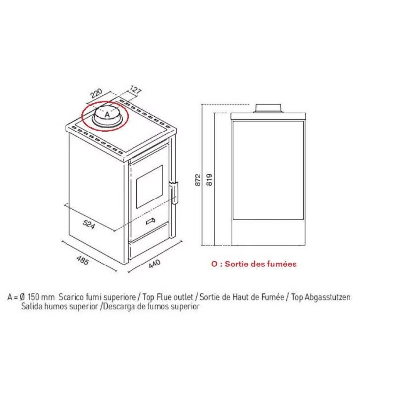 Scarico fumi Superiore, Ø 150 mm