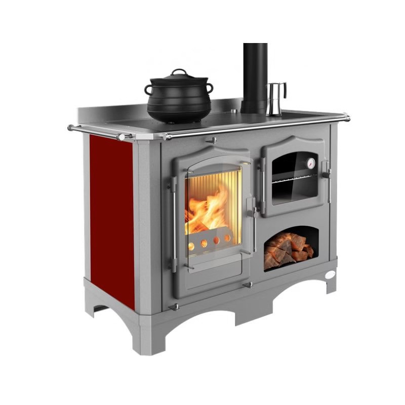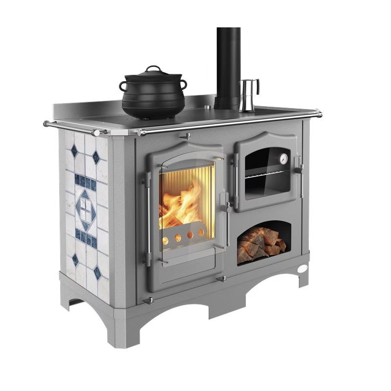 La stufa è dotata di piastra superiore in ghisa, forno da 39 L con termometro integrato e porta in vetro vitroceramico, permettendo di cucinare in modo tradizionale con il massimo comfort. Con un rendimento energetico del 90 % e conforme alla norma Ecodesign 2022, la Duchessa garantisce un riscaldamento sostenibile, economico e performante.