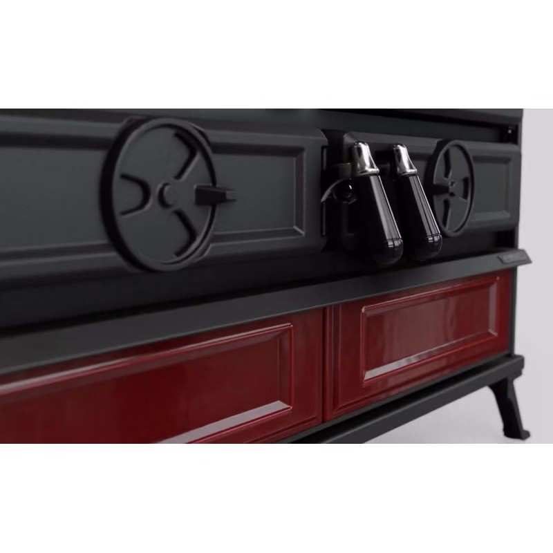 È disponibile in tre eleganti finiture — ceramica avorio, bordeaux o pietra naturale — così da adattarsi facilmente a qualsiasi stile d’arredo. La parte superiore ospita una piastra in ghisa con cerchi removibili, perfetta per cucinare direttamente sulla fiamma. Il forno da 43 litri, dotato di termometro integrato, offre spazio e precisione per ricette al forno di ogni tipo.