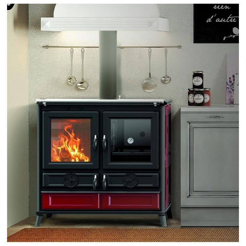 Tra le dotazioni utili per l’uso quotidiano troviamo anche un vano scalda-piatti, una cassetta raccogli-cenere, un cassetto porta-legna e una barra frontale. La struttura in ghisa e acciaio garantisce un’eccellente durabilità e un’ottima capacità di accumulo del calore, mentre la porta del forno con vetro ceramico resistente fino a 750 °C assicura sicurezza e un’estetica ricercata.
